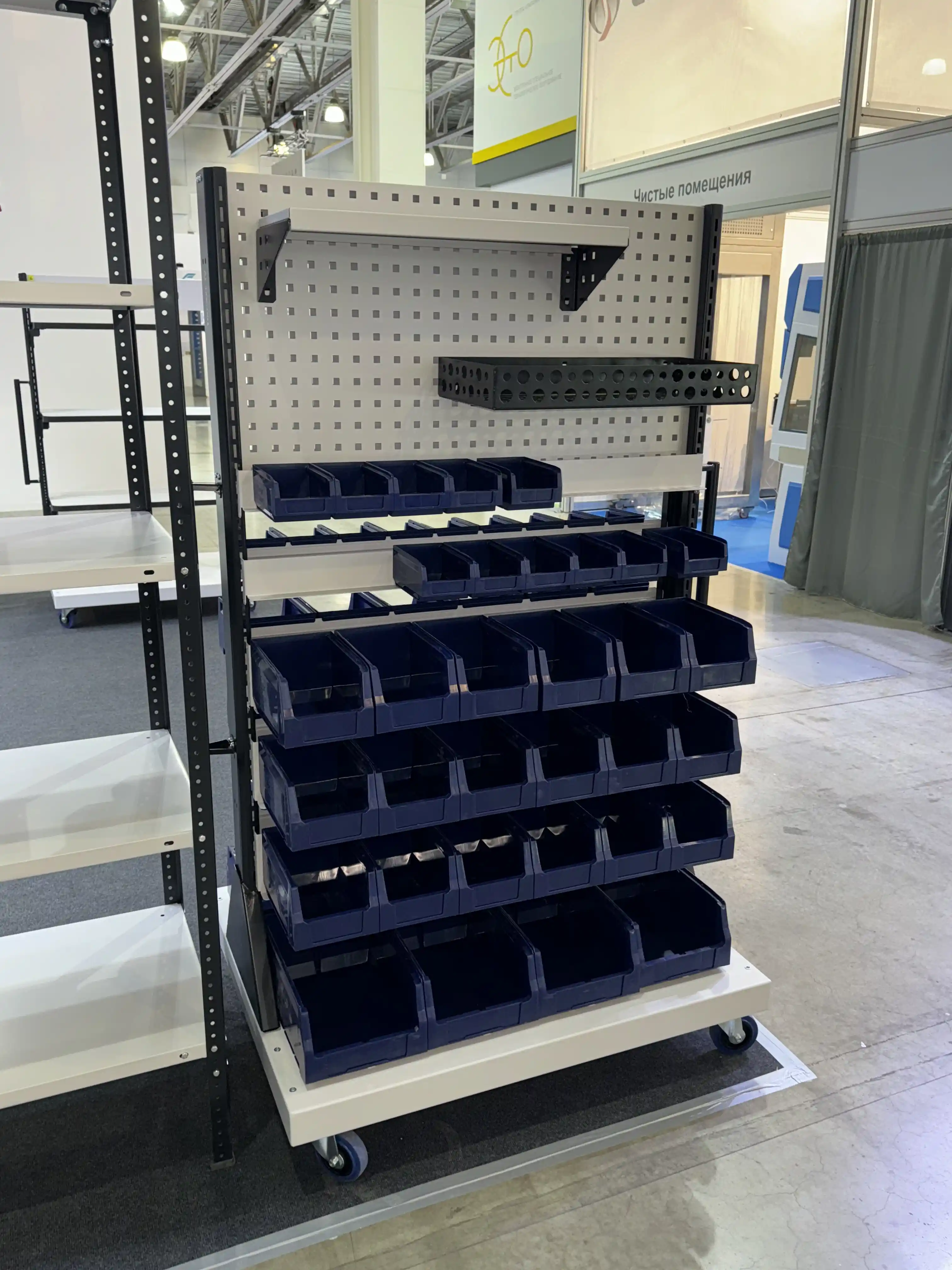 Передвижная стойка SPC 4B.1 (90.36.8) с навесными контейнерами различных размеров — это специализированная конструкция для хранения и организации электронных компонентов и устройств, обеспечивающая защиту от статического электричества и электростатических разрядов.