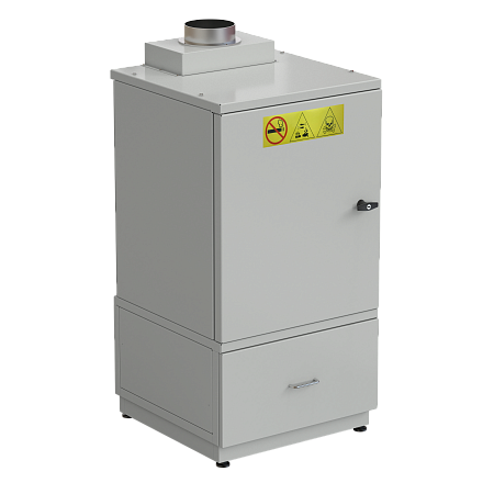 - Шкаф оборудован фланцем диаметром 125 мм для подключения к системе вытяжной вентиляции и имеет металлические дверцы, каждая из которых запирается на ключ;