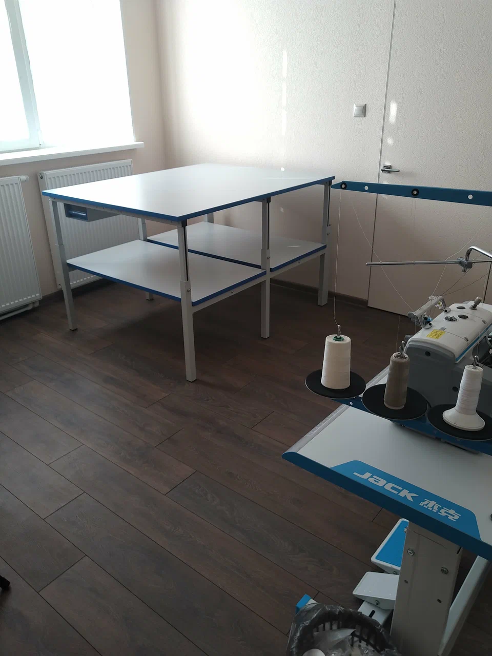 Модульная конструкция дает возможность оснастить раскройный стол дополнительным оборудованием: подвесными тумбами, перфорированными панелями, электропанелями, держателями рулонов, планкой для крепления лотков, освещением рабочей поверхности, угловым столом, ящиком для мелких принадлежностей, крючками для инструментов и другим дополнительным оборудованием и оснащением.