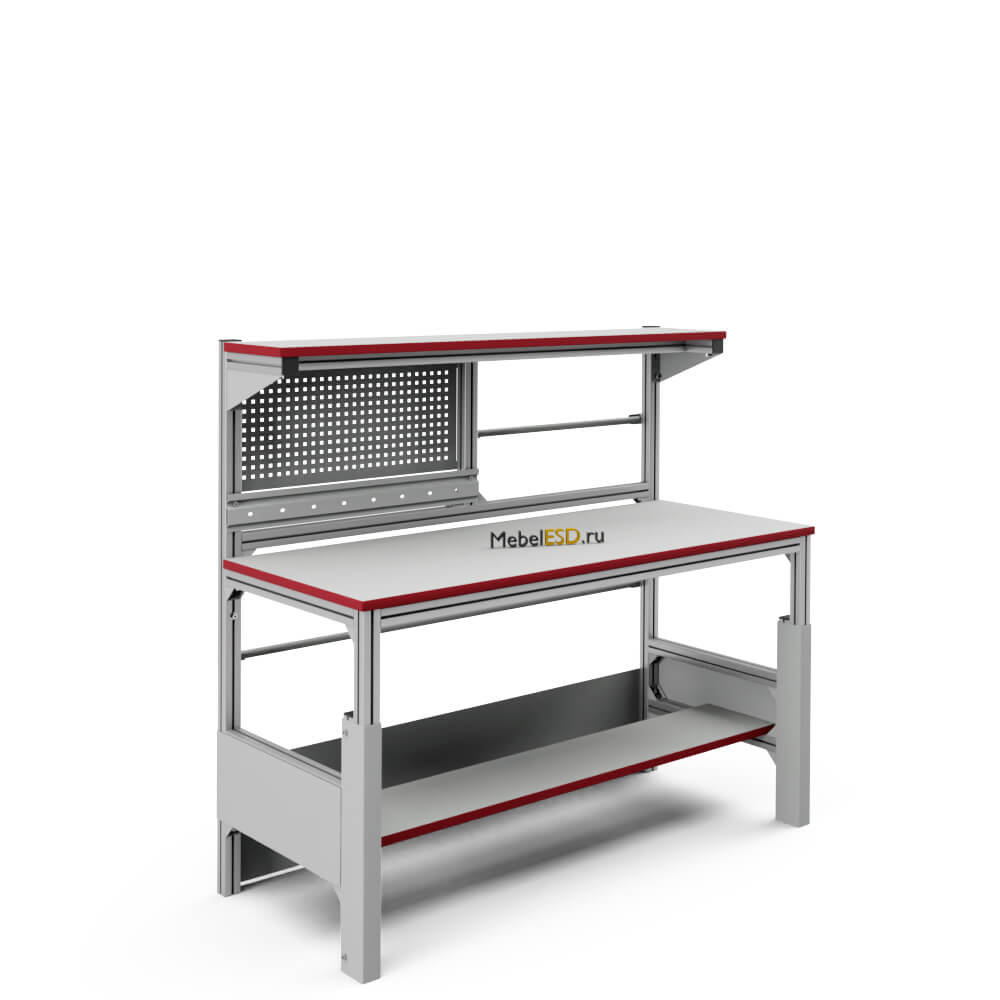 Каркас стола изготовлен из конструкционного профиля. Высота столешницы регулируется в пределах от 750 мм до 1000 мм, что позволяет работать сидя и стоя. Распределенная нагрузка на стол — до 300 кг. Конструкция стола позволяет оснастить его дополнительным оборудованием.