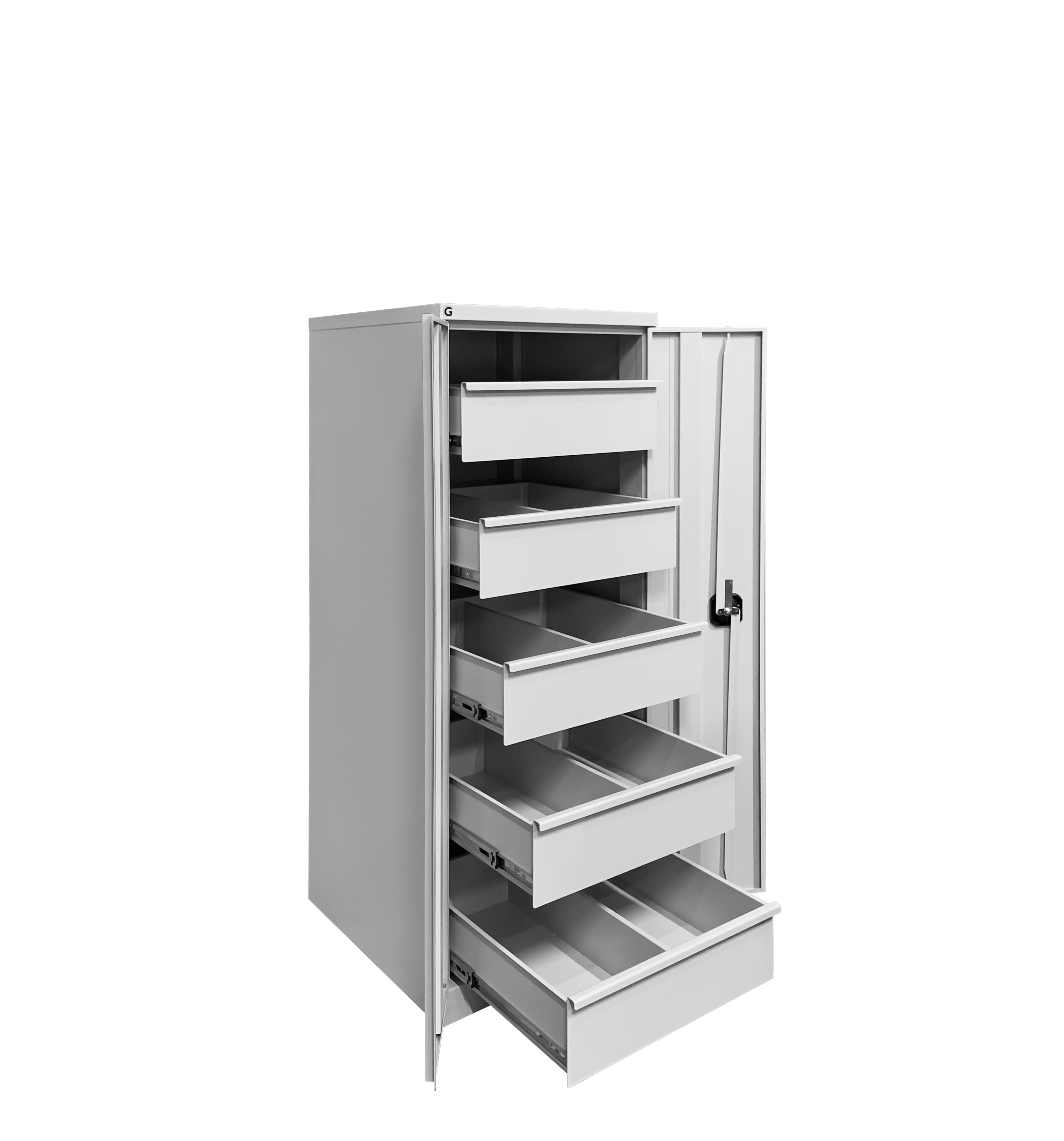 Нагрузка на ящик — до 30 кг. Металлический двухдверный шкаф серии ШДИ оснащен замком типа CAM LOCK с тягами; секретность 2000 комбинаций. Надежная и прочная конструкция.