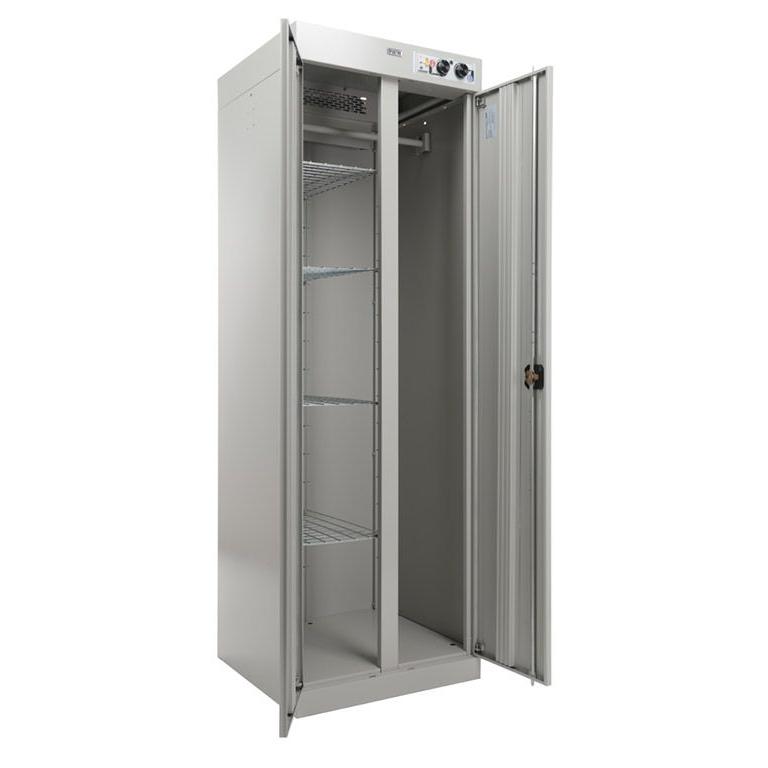 - Вместительность. Глубина шкафа 600 мм позволяет сушить объёмные вещи, в том числе спецовки и зимние куртки.