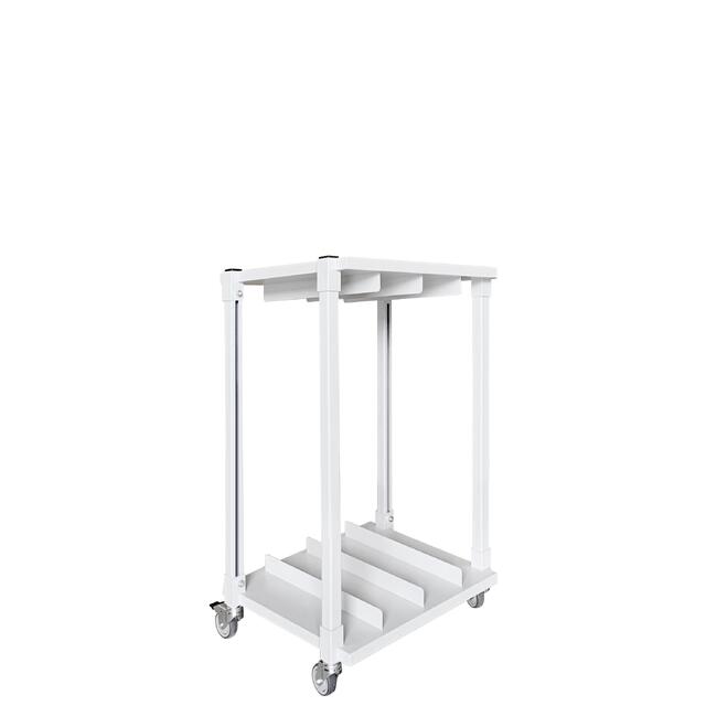 Cтойка СКМ используется для хранения и перемещения картонных заготовок, коробов. Полки имеют плавную, индивидуальную регулировку высоты и оборудованы перегородками для фиксации и разделения изделий. Верхняя полка имеет полость с резиновым покрытием для размещения вспомогательных, измерительных, канцелярских и иных принадлежностей. Стойка имеет четыре поворотных колеса (Ø 75 мм), два из которых оснащены тормозами. Каркас и полки выполнены из стали с эпоксидно-порошковым покрытием (Опционально RAL 7035). Максимальная нагрузка на стойку — 80 кг. Стойку для картонных коробок можно разместить рядом с рабочим столом, на складе или в зоне комплектации и упаковки.