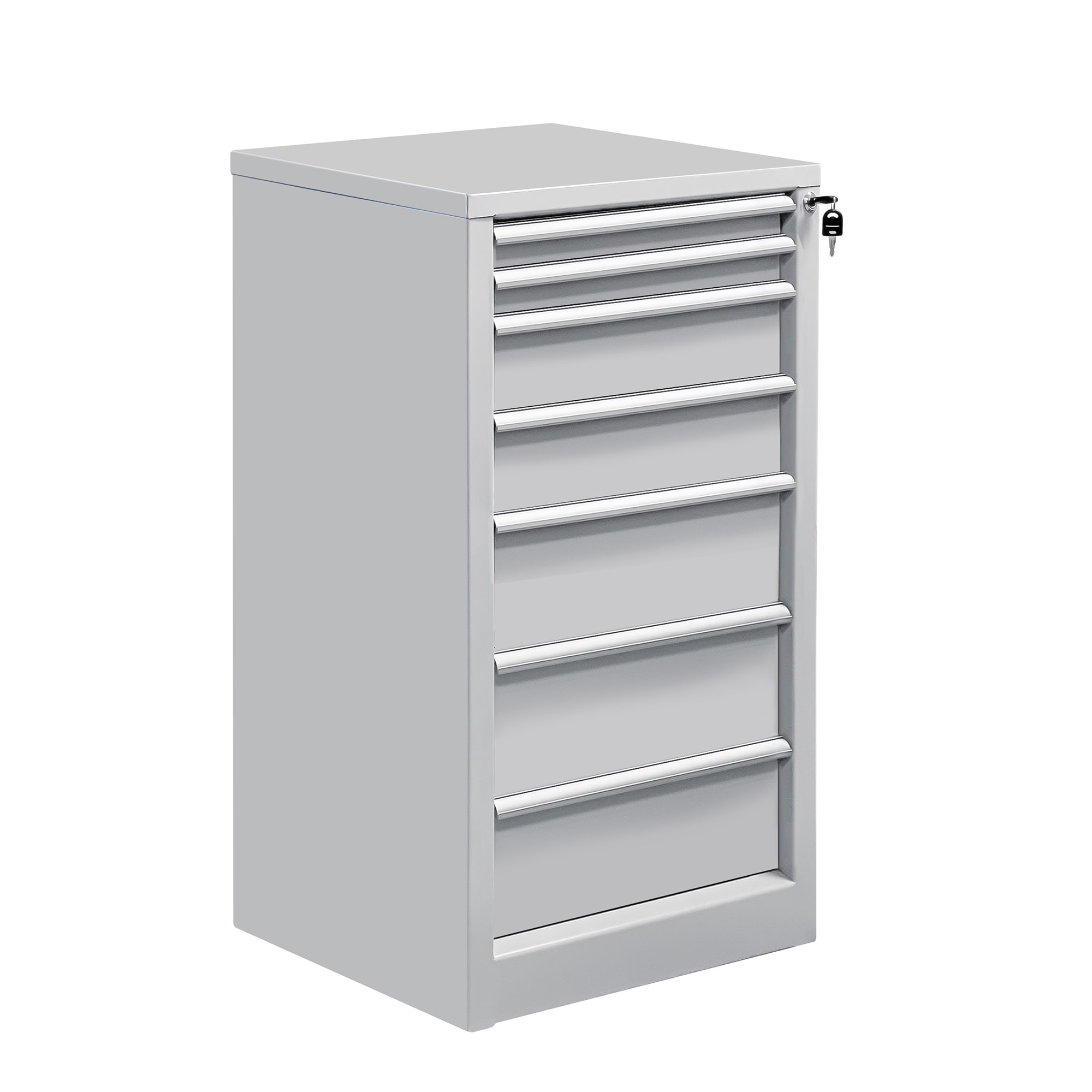 Тумба металлическая ТС-7 может быть использована для работы и организации хранения материалов как в составе рабочих мест, так и в виде отдельно используемой единицы. Ящики металлической тумбы имеют различные размеры, что позволяет организовать в них хранение как крупных материалов и инструментов, так и мелких комплектующих.